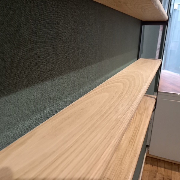 • 4 étagères Châtaignier massif épaisseur 20 mm avec bords rayonnés